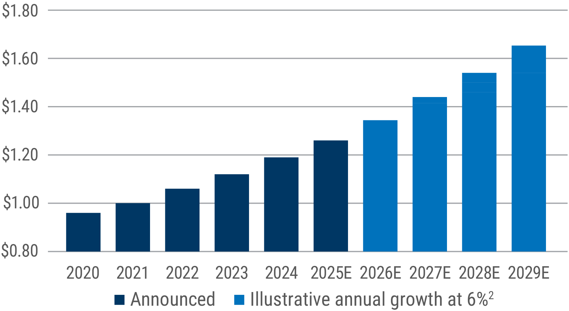 2) 2026E onwards represents midpoint of 5-7% CAGR range.